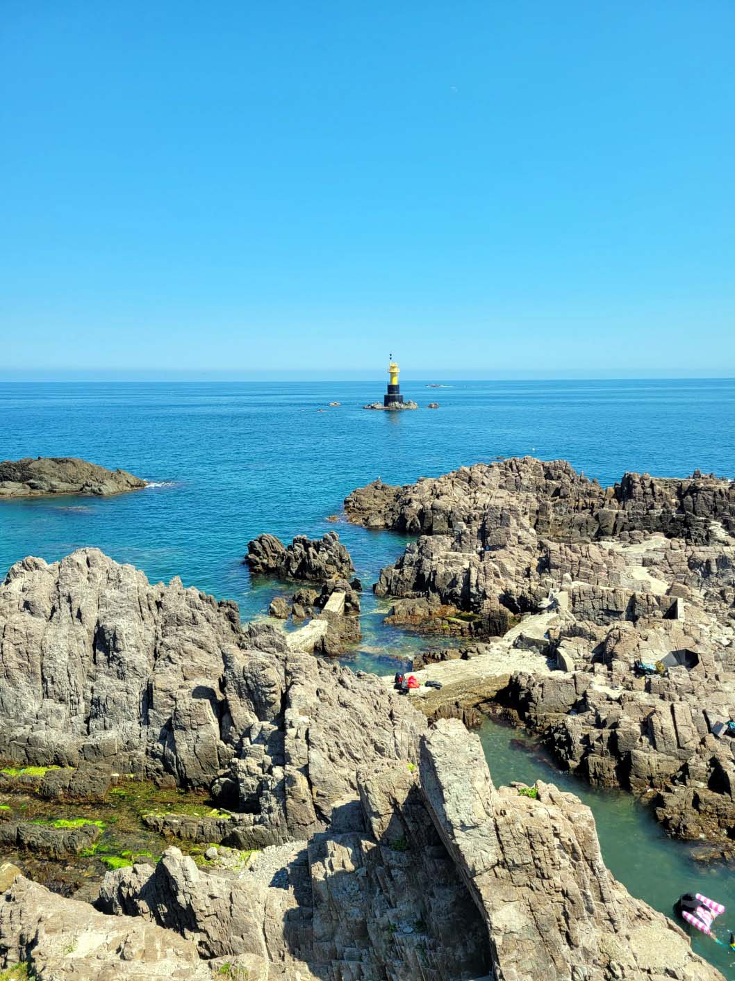 해국길을 돌아 송대말등대로 갔다. 등대 밑 일제시대 가두리양식장으로 사용했다는 곳에는 해수욕장이 아닌데도 물놀이하는 사람들로 붐볐고, 갯바위 곳곳에도 많은 사람들이 몰려 있었다. 문화관광부 지정 사진 찍기 좋은 녹색명소에서 한 컷하고 빛 체험관으로 들어가 빛의 마술을 구경하고 나왔다. 감포깍지길을 따라 걷다가 날씨가 너무 더워 전촌삼거리에서 150번 버스를 타고 경주터미널로 왔다.