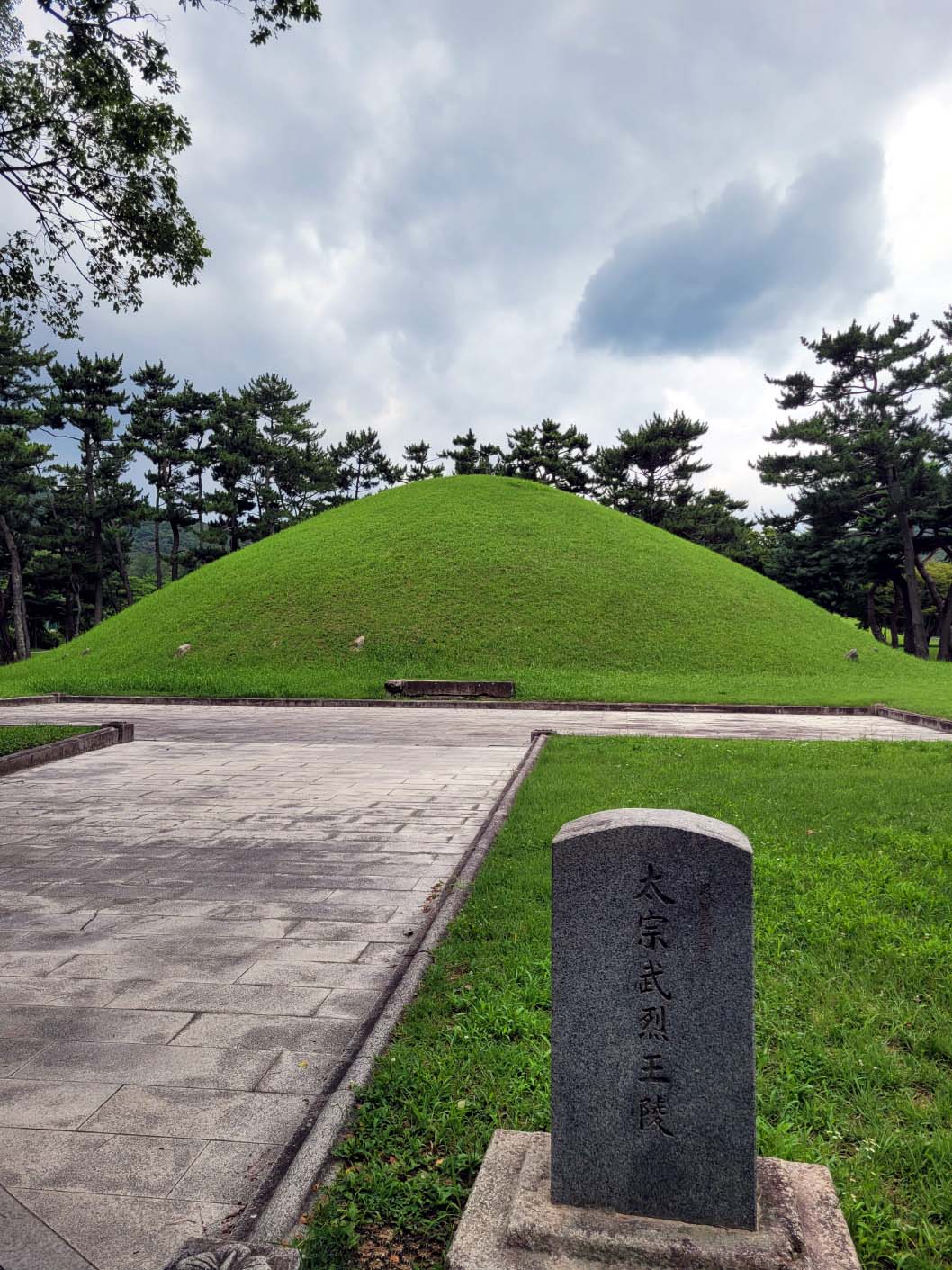 도로를 따라 걷는 것은 피곤하지만 그래도 싱싱하게 자라 바람에 일렁이는 넓은 들판의 벼를 보며 풍요를 느끼고 수경재배로 딸기농사를 짓는 비닐하우스를 쳐다보며 한참을 걸으니 사적 20호인 태종무열왕릉이 나온다.