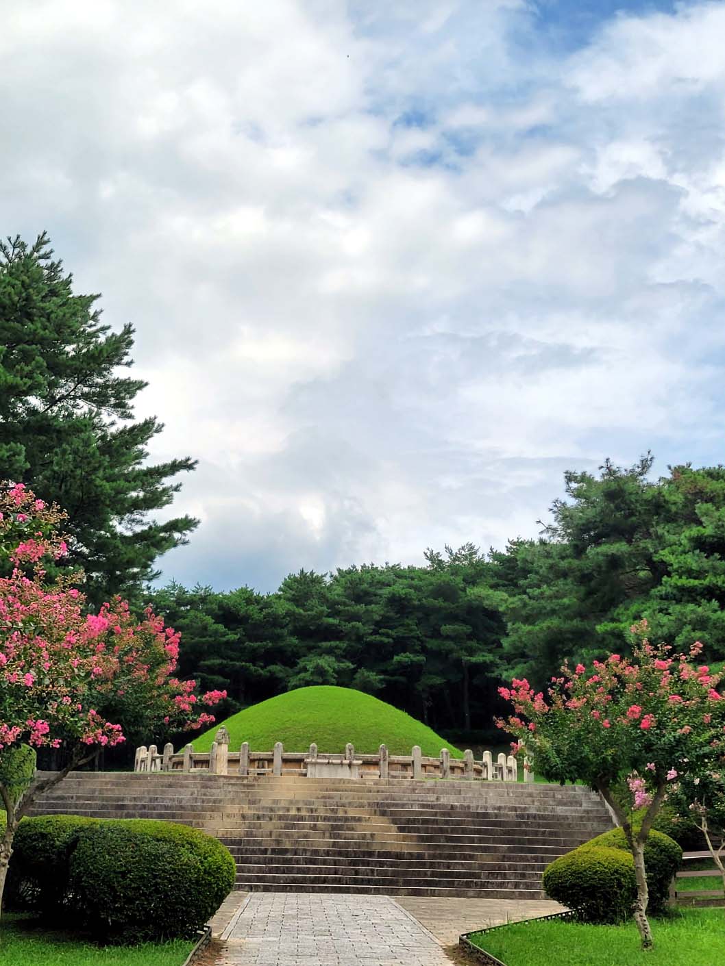 지난번에는 출입불가였던 김인문묘와 보물인 경주 서악동 귀부를 볼 수 있어서 좋았다. 태종무열왕의 둘째 아들인 김인문은 일찍이 당나라에 숙위(속국 또는 주변나라의 왕족들이 볼모로 가서 머물던 일)하면서 신라와 당의 관계유지에 중추적 역할을 담당해 삼국통일의 숨은 주역을 했던 인물로서 당나라에서 관직을 지내다가 죽자 당 고종이 시신을 신라에 보내 장사지내게 하였다고 적혀있었다. 무덤 주위의 배롱나무 꽃과 벌초를 한 봉분이 잘 조화를 이루고 있었다.