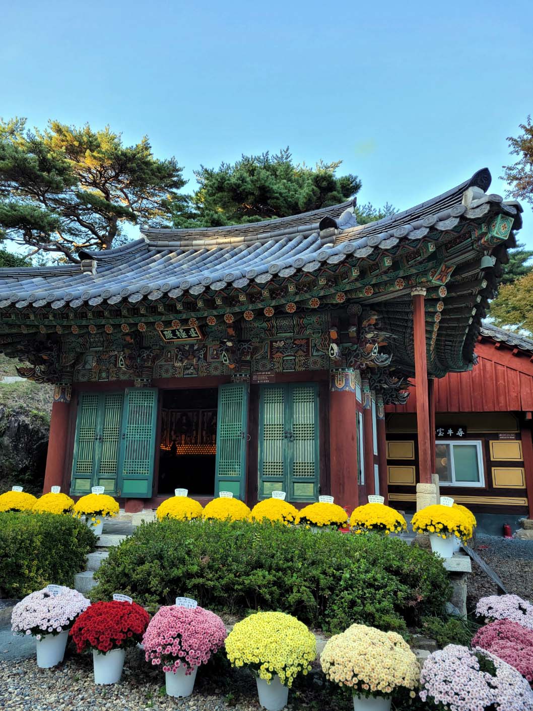 개산대제가 끝난 통도사에는 국화장엄의 국화가 시들어 가고 있고, 주위의 단풍도 아직 물이 덜 들었으나 하늘은 높고 푸른 완연한 가을이었다.