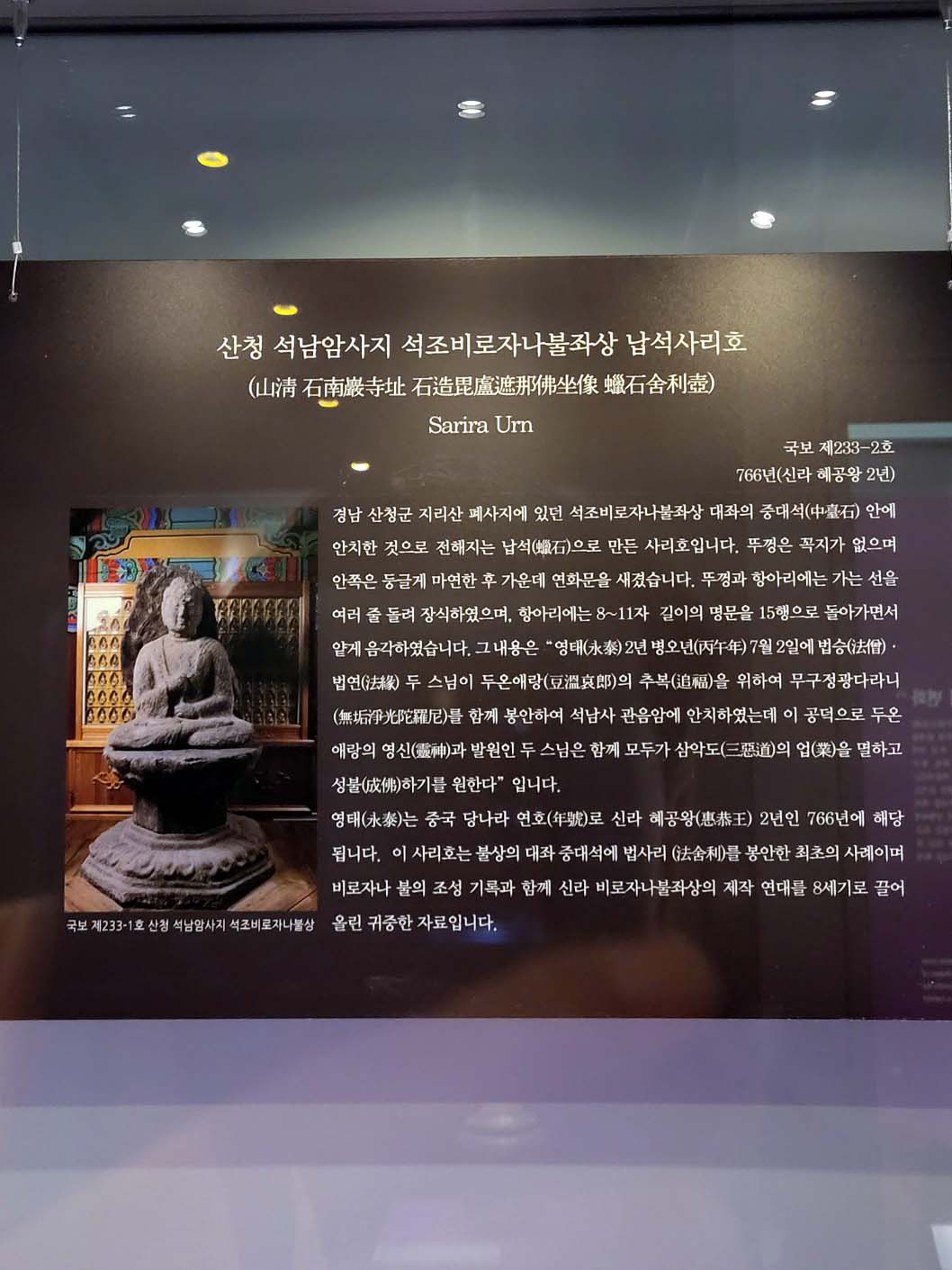 산청 석남암사지 석조비로자나불좌상 납석사리호(국보)
