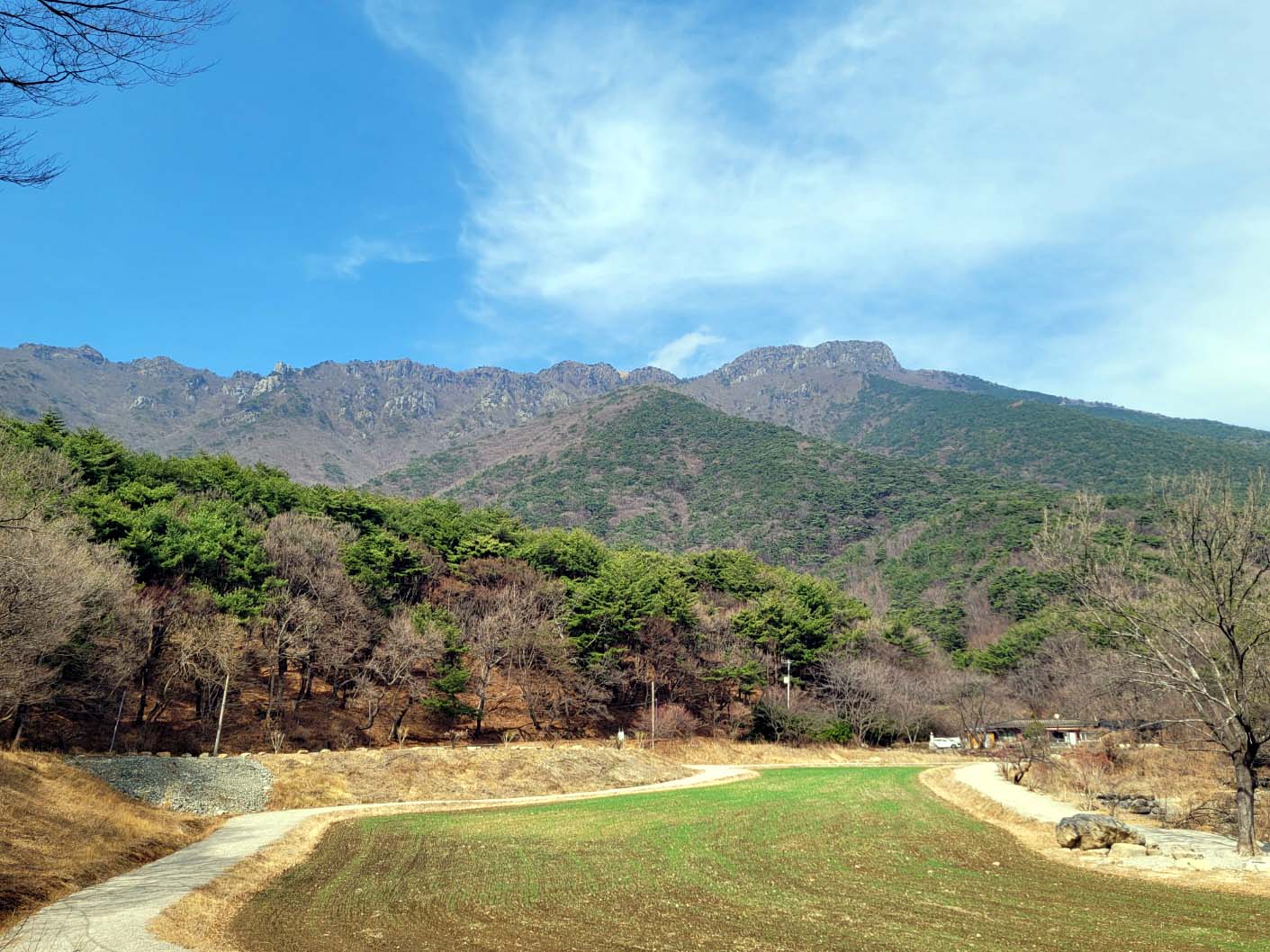 반야암을 나와 작년에 메밀을 심었던 넓은 밭(지금은 보리밭) , 새로 낸 개울가 길 옆에 옮겨 심어진 백매, 청매와 산수유 꽃을 보며 새로 난 덱 로드를 걸어 통도사 큰절로 갔다.